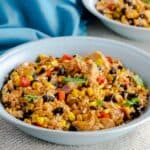 Press Cancel on the Instant Pot. Add in the black beans, super sweet corn, red onions, and diced red pepper.