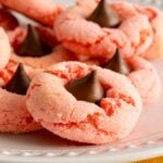 These Strawberry Kiss Cookies are easy to make and use strawberry cake mix and Hershey Kisses in the center of each cookie. These cookies are a fun Valentine's Day treat.
